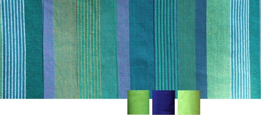 Fein eingewoben sind in jeder Farbe noch andere Blau- und Grüntöne.