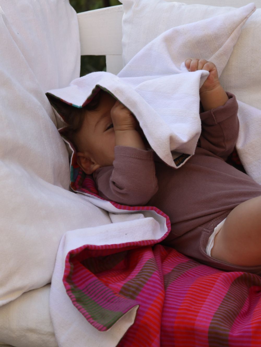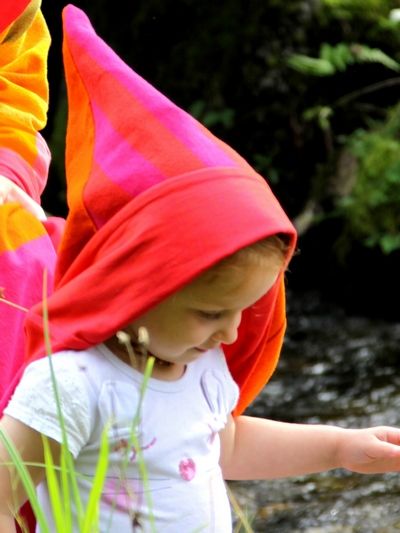 Kapuzentücher sind für Babys und Kleinkinder herrlich zum Einkuscheln, zum Spielen, zum Verstecken und um sich rundum geborgen und beschützt zu fühlen.